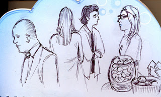 Next painting lesson was about placing objects in an environment. We first had to sketch some environments in the school: